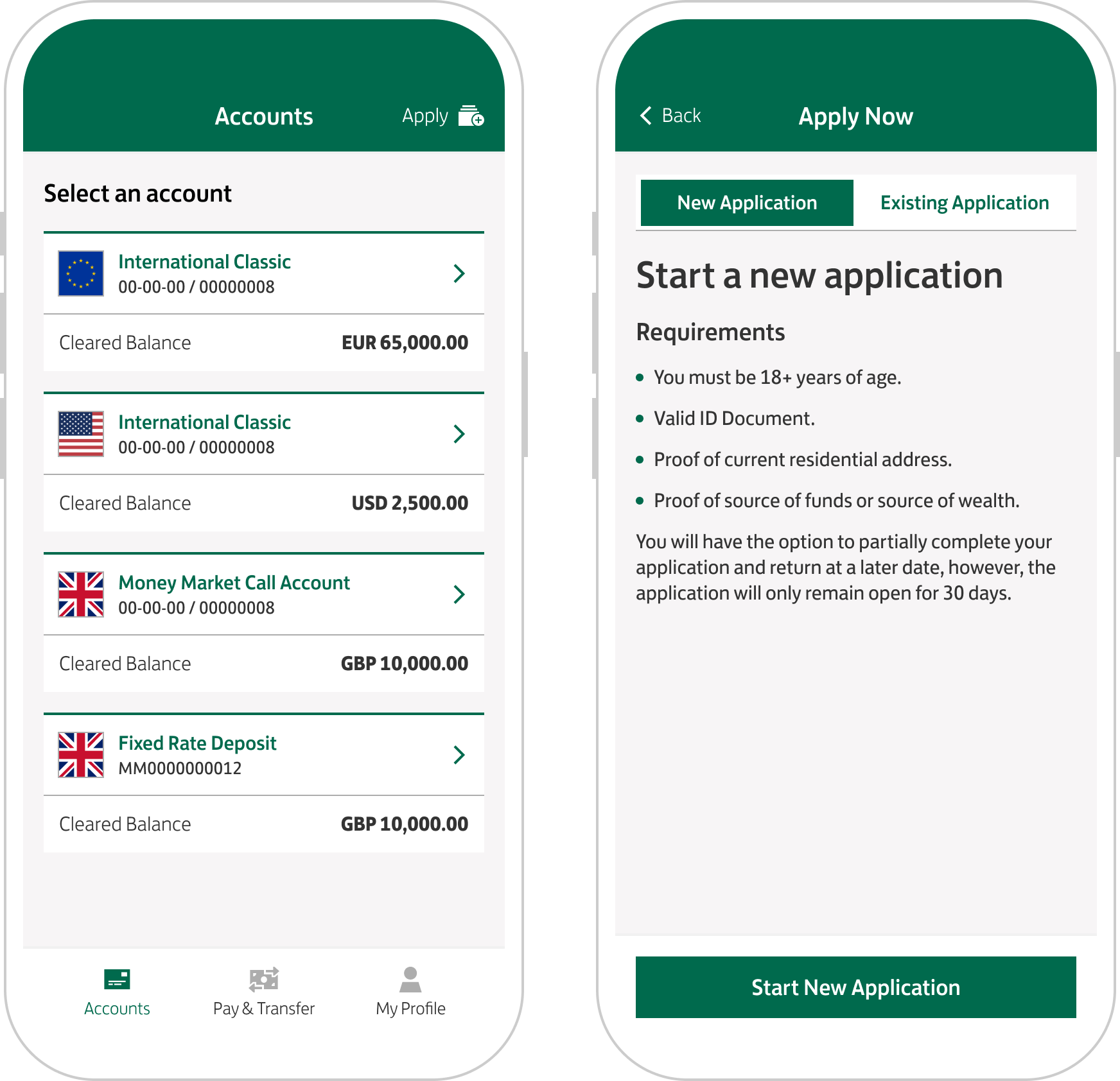 - New customers can easily apply for sole or joint accounts by downloading the International mobile banking app.