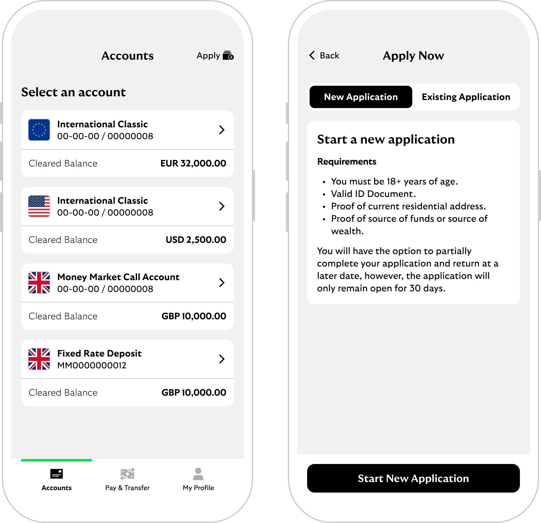 - New customers can easily apply for sole or joint accounts by downloading the International mobile banking app.